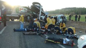 Konya'da TIR'ın karşı şeride geçip, kamyon, minibüs ve otobüse çarpması sonucu meydana gelen kazada ilk belirlemelere göre 7 kişi öldü, 12 kişi yaralandı.Kaza, bugün saat 06.45 sıralarında Konya- Afyonkarahisar karayolunun 20'nci kilometresinde meydana geldi. TIR'ın karşı şeride geçerek kamyon, minibüs ve otobüse çarpması sonucu ilk belirlemelere göre 4 kişi öldü ve çok sayıda yaralı var. Ölü sayısının da artabileceği belirtildi.