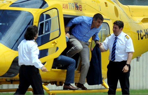Şenol Güneş ile Bursaspor Kulübü Başkanı Recep Bölükbaşı, Yöneticiler Recep Güzeldağ, Ali Büyükkurt ve Alper Tunga Çevik helikopter ile birlikte tesislere geldi.